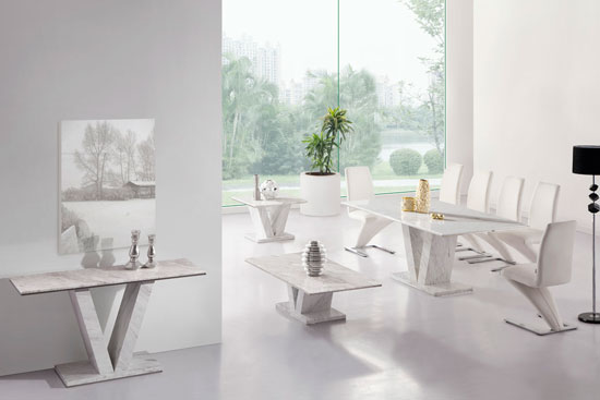 Hera - White-Grey Marble V leg Console Hall Sofa Table