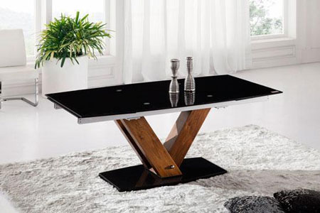 - Black centre panel adds sophistication to the table top